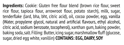 Two pillowy chocolate cake cookies sandwiching a thick, marshmallow buttercream filling. A nostalgic favourite, made safe for you to enjoy — rich, fluffy, and deeply chocolatey.